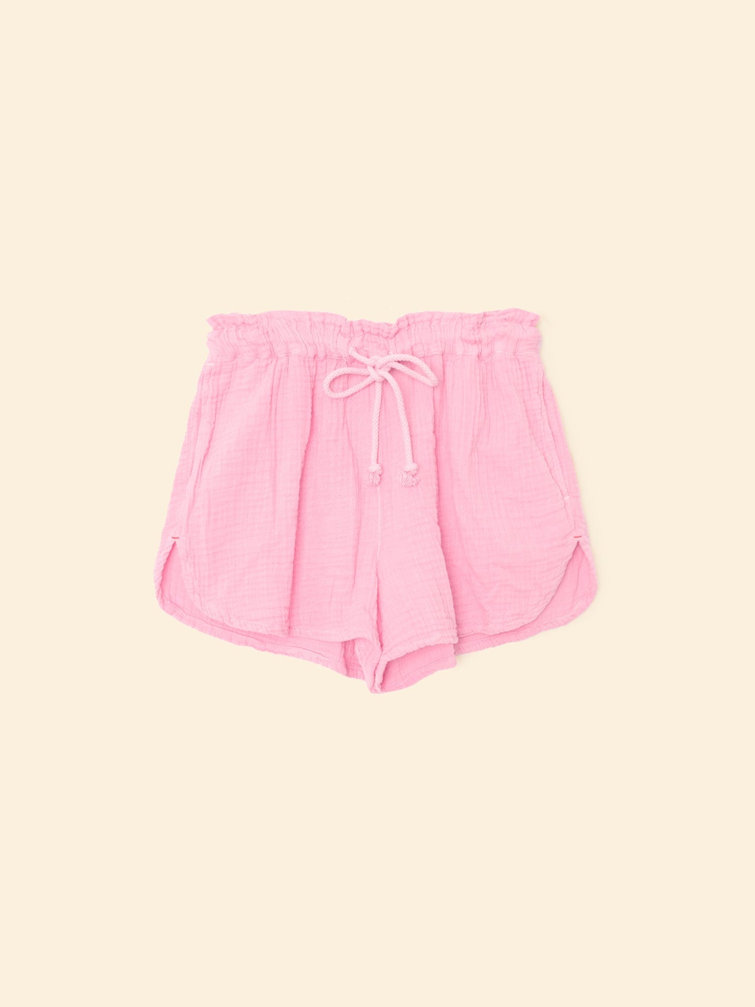 Short and Sweet. Starla is made in our washed double faced cotton gauze for a soft, gently crinkled feel. Starla is a Dolphin short with an elasticized drawstring waist and side seam pockets.