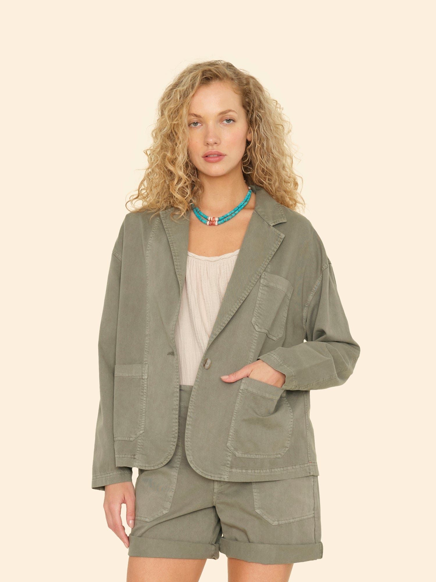 Roger that. Jonnie is new this season in our vintage washed cotton twill. This military-inspired blazer jacket features a notched collar, horn buttons, front patch pockets, and seam details throughout.