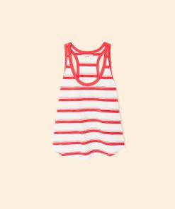 Back to Basics. Jett is back this season in our ultra-soft striped cotton jersey. This racerback tank features contrast wide self-binding along the neck and a curved high low shirttail hem. Pair back with the Crawford or Crispin lounge pant for ultimate ease and comfort.