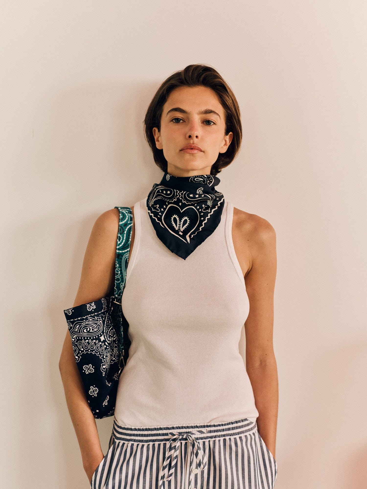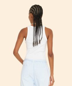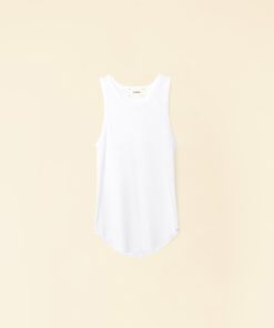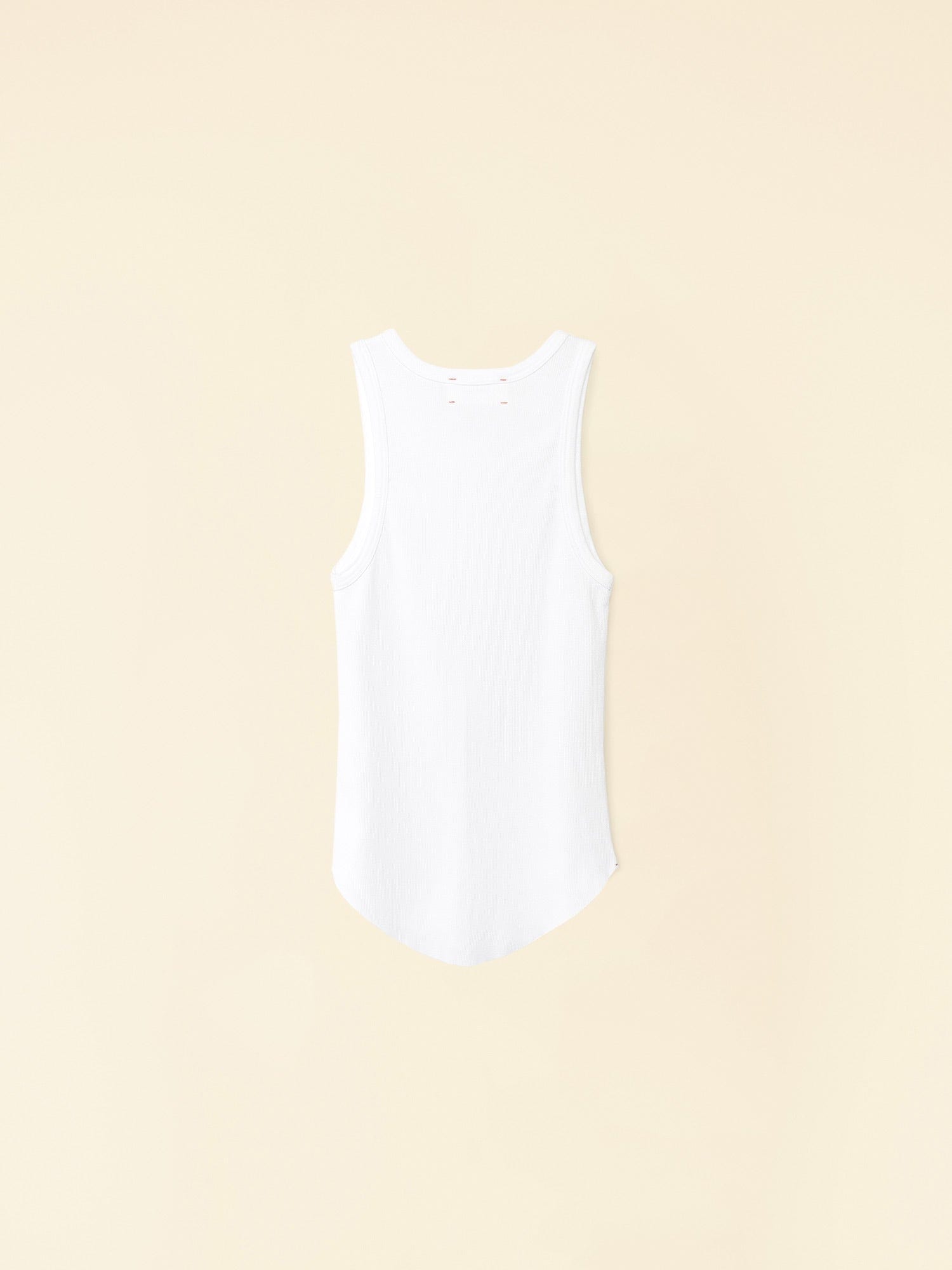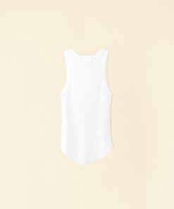 Back to Basics. Arynn is made in our fine cotton rib knit. This soft cut away tank has a raw shirttail hem and is a staple layering piece.